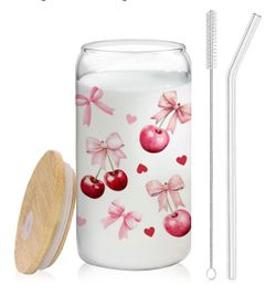 Coquette Preppy Pink Bow Cherry Glass Cup.$7West Sacramento, CA
