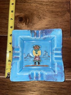 vintage ceramic ashtray features a Southwest-inspired figure and desert landscape design in turquoise and purple tones$60Tempe, AZ