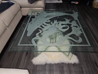 Vintage 3/8"Tempered Glass Coffee Table Etched Dolphin Underwater Design 38"x38" Square $200Oldsmar, FL