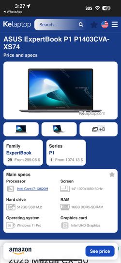 ASUS ExpertBook P1 P1403CVA-XS74$600Queens, NY