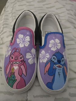 Vans Slip-on Featuring a colorful cartoon design with floral accents. $30Moreno Valley, CA