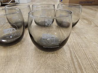 Seattle Seahawks Smoked NFL Whiskey Glass, Low Ball, Roly Poly Vintage 1970s Football Set of Five