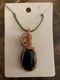(11) Hand-Crafted Wire-Wrapped Pendant. Copper Wire/Black Cabochon. $10Mukilteo, WA