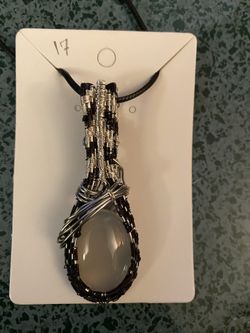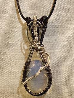 (17) Hand-Crafted Wire-Wrapped Pendant. Silver And Black Wire With Milky White Cabochon. $10Mukilteo, WA