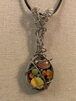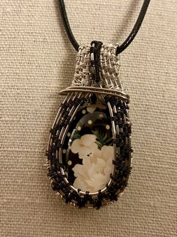 (12) Hand-Crafted Wire-Wrapped Pendant. Silver And Black Wire/Floral Cabochon. $10Mukilteo, WA