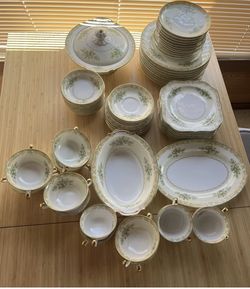 Vintage Noritake Set 66 Pieces Green & Gold Trim Floral (1950-59). $500Belmont, CA