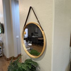 26" Round Wooden Mirror with Leather Strap and Brass Hanger by Studio McGee$40Gilbert, AZ