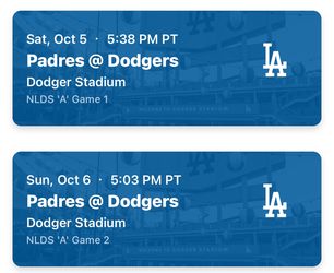 Dodgers V Padres NLDS $450Los Angeles, CA