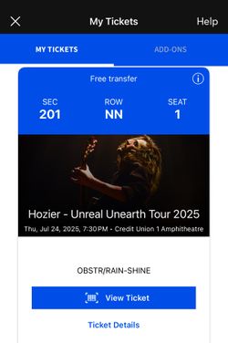 Hozier Ticket$50Chicago, IL