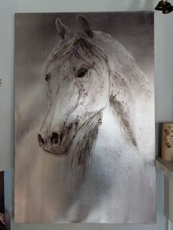 Stunning 3d Silver Horse Canvas On Thick Wooden Frame $50Fitchburg, MA
