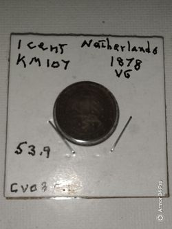 NETHERLANDS KINGDOM 1 CENT 1878 RULER:WILLIAM III,CROWNED RAMPANT LION,LEFT$5Biscayne Park, FL