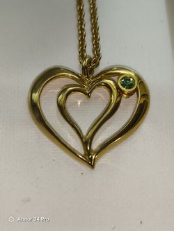 Vintage Avon gold-tone double heart pendant necklace with a floating green gemstone$20Biscayne Park, FL