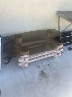 rustic coffee table featuring a log-style base made from cedar or pine logs and a tinted glass top$50Anaheim, CA