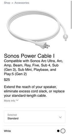 Sonos Power Cable White$20Renton, WA