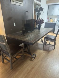 Rustic solid wood farmhouse dining table set for sale. $450Oak Glen, CA