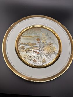 Vintage Westland Collector Art Of Chokin Engraved Plate Village Scene 9″ Mum Plate Japan 24K Rim Hanging wire already built into plate No chips Ask$25San Antonio, TX