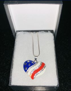 New Rhinestone American Flag Heart Necklace$20Fresno, CA
