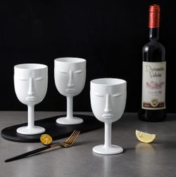 White Face Goblet Glasses Funny Face Iced Tea Glasses set of 6 for serving Juices and Wine Cute Human Face Wine Glasses as Functional D$60Bellflower, CA