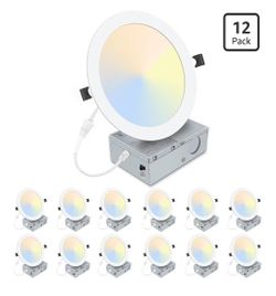 12 Pack 8 Inch LED Recessed Lighting with Junction Box Ultra-Thin, 3000K/4500K/6000K Selectable, 8" Dimmable Canless LED Downlight, 1800LM CRI80 High $80Paramount, CA