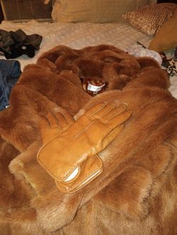 Camel Colored Woman's Fur Coat W Leather Gloves$200San Antonio, TX
