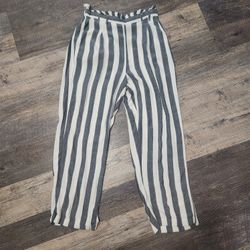 American Eagle Womens Medium Flowy Gray And White Striped Ankle Pants $15Grandy, NC