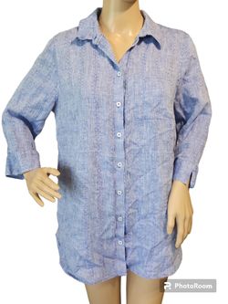 Chico's Womens Size 1 (M, 8/10) 100% Linen Blue 3/4 Sleeve Button Down Blouse.$22Grandy, NC