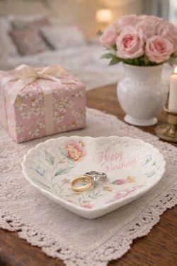 Mikasa Japan 1980s Bone China Heart Dish “Happy Birthday”, 6.25”$15Natick, MA