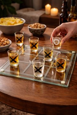 The Jay Companies 1990s 10-Piece Shot Glass Tic-Tac-Toe Game Set, 13.5x13.5”$9Natick, MA