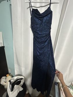 Gorgeous navy blue shimmer gown from Josouim, perfect for prom, weddings, or formal events. ✨ Features: • Cowl neckline with adjustable spaghetti str$60Norwalk, CA