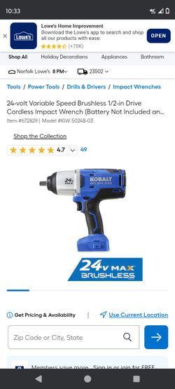 Kobalt 1/2 Inch Impact$100Thomasville, NC
