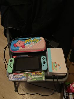 Nintendo switch animal crossing edition with Kirby games and dragon game$320Fresno, CA