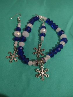 Glass Beads Jewelry Set Holiday Christmas Blue Icicle Earrings Bracelet $35Pompano Beach, FL