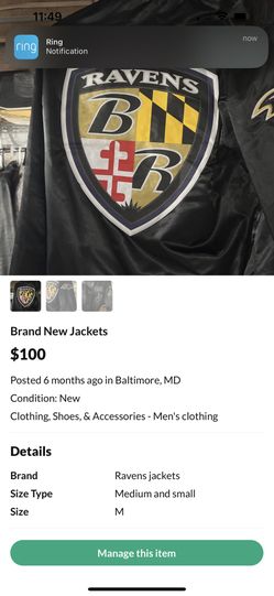 Raven Jackets$100Baltimore, MD