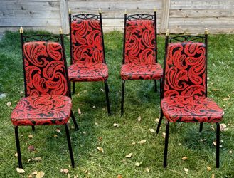 Vintage Red & Black Vinyl Dining Chairs | Mid Century 1960s Vegas Lounge Casino Glam | Paisley Print$250Denver, CO