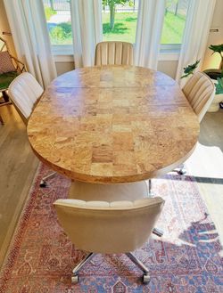 MCM Vintage Chrome & White Leather Chairs with Burlwood Laminate Table by Chromcraft$450Denver, CO