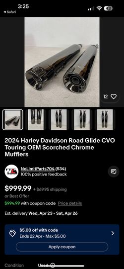 Harley Davidson Black Chrome Cvo Touring Mufflers$60Chandler, AZ