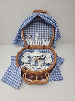 Vintage Disney Whinnie The Pooh Tea Set With Wicker Basket Complete $75Bellevue, WA