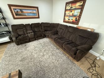 3 piece sectional couch will full size fold out sleeper, 2 power recliners 1 is not working this couch is in a home with dogs good condition $250Long Beach, CA