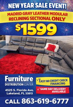 Winter Clearance Sale. Madrid Gray Leather Modular Reclining Sectional Only $1599. Easy Finance Option. Same-Day Delivery $1,599Lakeland, FL
