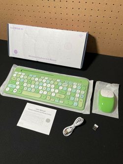 New Retro Wireless Keyboard and Mouse Combo, Full-Size USB Keyboard with Round Keycaps, 2.4GHz Wireless for Desktop, Laptop and Computer (Green-Colorf$15Phoenix, AZ