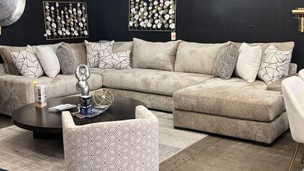 🤩New Champagne Fabric Sectional W 5 Pillows Included $1,598El Paso, TX