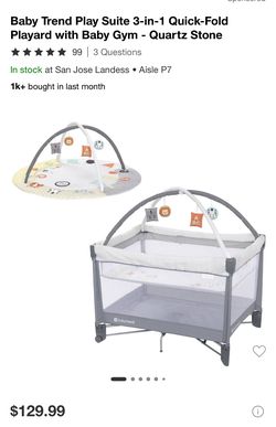 BABY THREND PLAY SUITE 3-in-1 QUICK FOLD PLAYARD WITH BABY GYM -QUARTZ STONE$80San Jose, CA