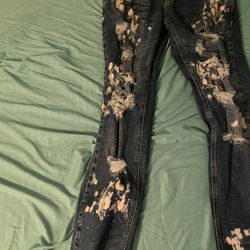 Black Distressed Designer Jeans with Rips and Yellow/White Paint Splatters$35Miami, FL