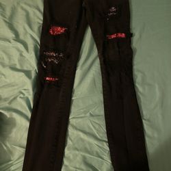 Black Distressed Jeans with Red Patches$20Miami, FL