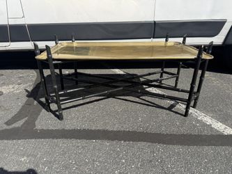 Vintage Hollywood Regency Brass Tray Coffee Table – Faux Bamboo Base | Made in Germany$650San Fernando, CA