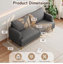 70"" Wide Linen Loveseat Sofa with USB Port, Cozy for Relaxing in Small Living Spaces, Bedroom & Studio, Dark Gray$150Rancho Cucamonga, CA