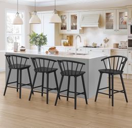 Bar Stools Set of 4, Black Farmhouse Barstools with Semicircular Backrest, Mid Century Modern Counter Height Bar Stools for Kitchen Island, 24 Inch$160Rancho Cucamonga, CA