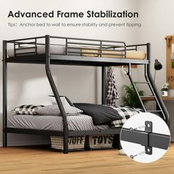 Bunk Bed Twin Over Full Metal Bunk Beds Frame with Bottom Space, Built-in Ladder and High Guardrail for Kids Adults Teens Dorm Bedroom, Heavy Duty , S$130Rancho Cucamonga, CA