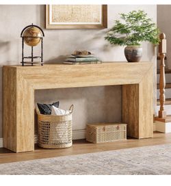 63-Inch Farmhuose Wood Behind Sofa Couch Table, Large Foyer Rectangular Accent Console with Wooden Double Base for Entrance, Living Room, Hallway, Nat$80Rancho Cucamonga, CA