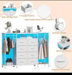 New in box. 59.1" W Dresser for Bedroom with Hanging Rack, 8 Drawer Dresser with LED Lights & Charging Station, Fabric Dressers with Portable Wheels,M$80Rancho Cucamonga, CA
